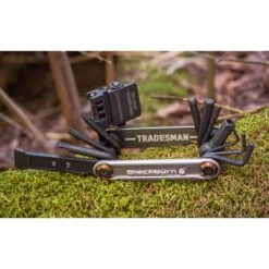 Das Blackburn TRADESMAN Multi Tool ist ein praktisches Werkzeug für den Outdoor-Einsatz oder beim Biken. Die parkerisierte Oberfläche sieht nicht nur gut aus sondern schützt die 18 Werkzeuge zuverlässig vor Rost. Das herausragende an diesem Multi-Tool ist allerdings der integrierte Kettenschlossknacker. Zusätzlich gibt’s die wichtigsten Tools, einen Belagspreizer mit Kettenschlosshalter und obendrauf eine solide Handwerker-Optik.